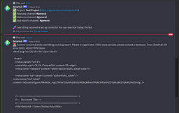 When reporting a bug using the /report command on a discord server open in a browser windows, a (seemingly random) error occurs starting with "🚨 An error occurred while submitting your bug report. Please try again later."
