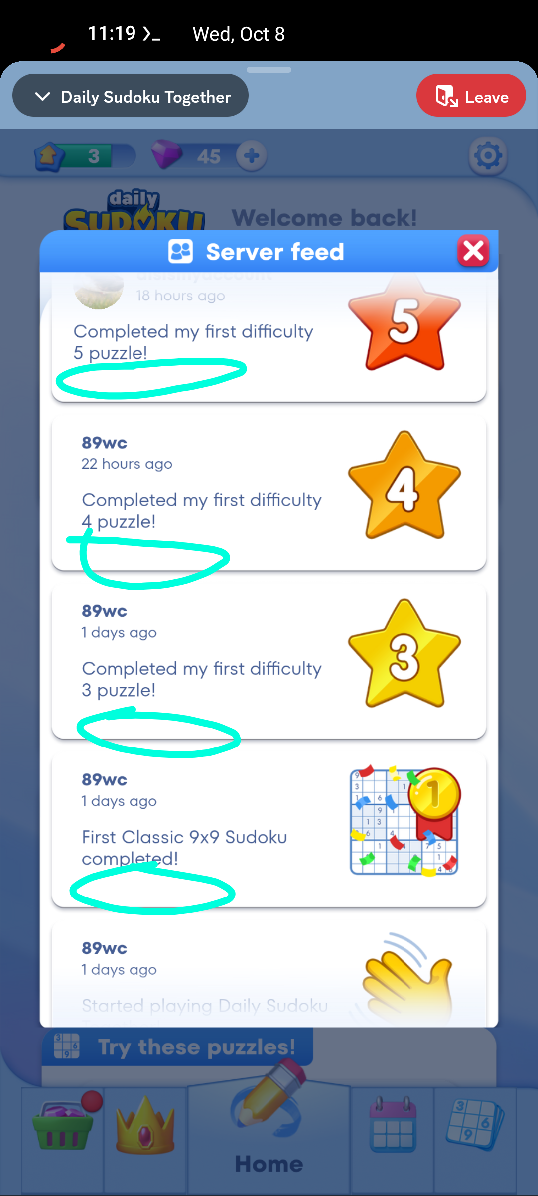 It ideally would be nice to be able to have a sort of hiscores as well in the future, for server members (e.g. puzzle date as well as difficulty with the time spent solving, an individual user page that shows amount of puzzles completed with their type, etc.)