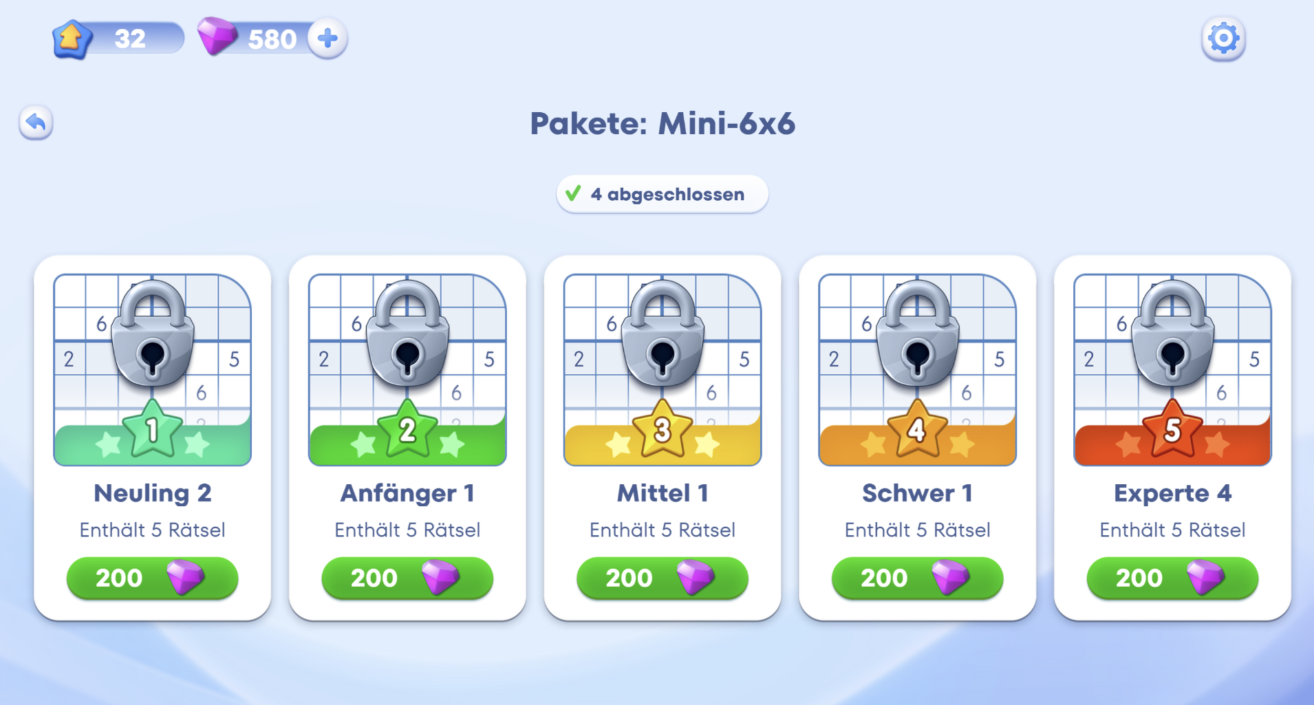 Mini 6x6 & Killer 6x6 Packs - Purchased packs start with 1/5 Completed and only 4 Puzzles