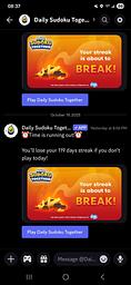 I am experiencing difficulties accessing daily sudoku due to a screen loading issue, which is hindering my progress towards achieving a 120-day daily streak. This issue is reminiscent of a previous problem that occurred after a 7-day streak, resulting in the reset of all users' streaks. Having anticipated this recurring issue, I chose to disregard it. Additionally, I receive messages and notifications from sudoku warning that my streak is about to be broken later in the day, despite having completed the daily puzzle early in the morning and having it registered, thereby maintaining my streak. It is unclear why such notifications are sent when users have already completed their daily sudoku puzzle and successfully extended their streak.