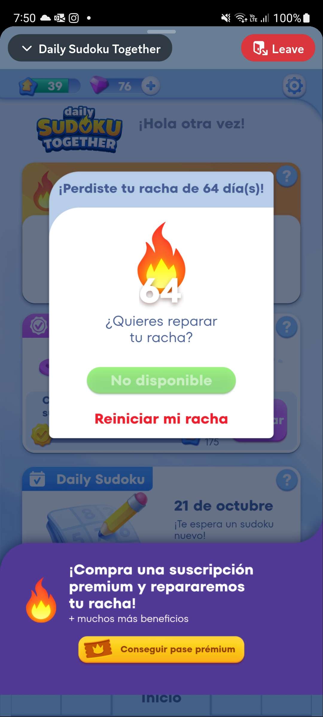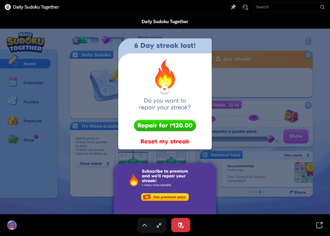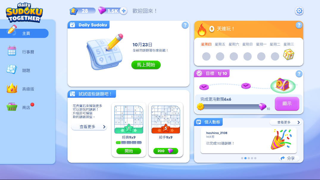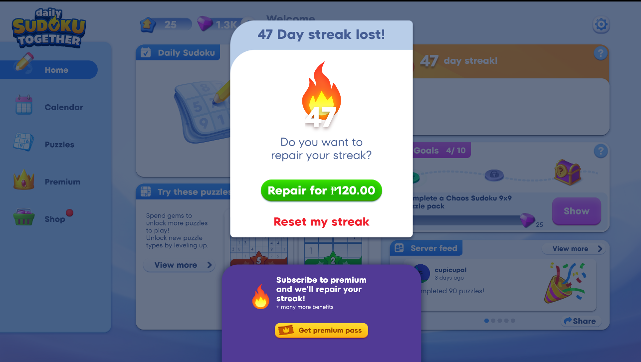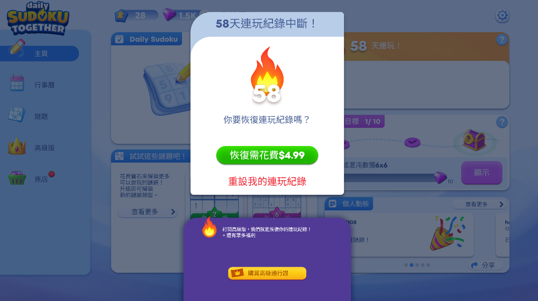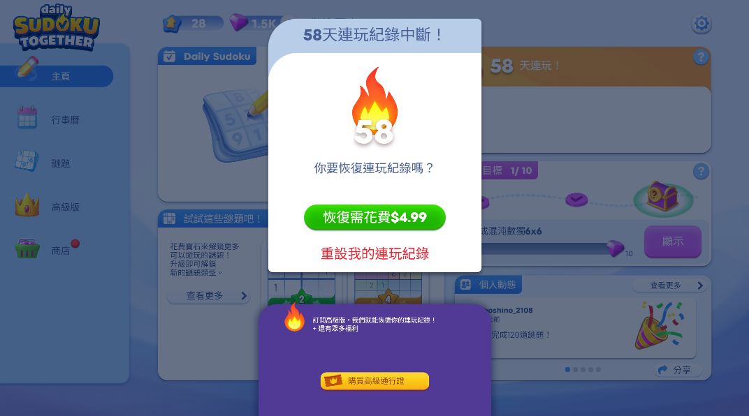 Hi there🥲 My Sudoku winning streak has been broken for two weeks, and I haven’t been able to receive the reward gems during this time. Could you please help me check what’s going on? Thank you so much for your help!