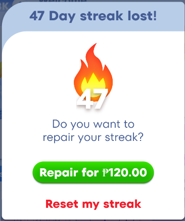 Did you get my msg? It disappeared? My 103 day streak was broken last Wed. I was asked if I wanted to repair it. I responded yes, but nothing happened.