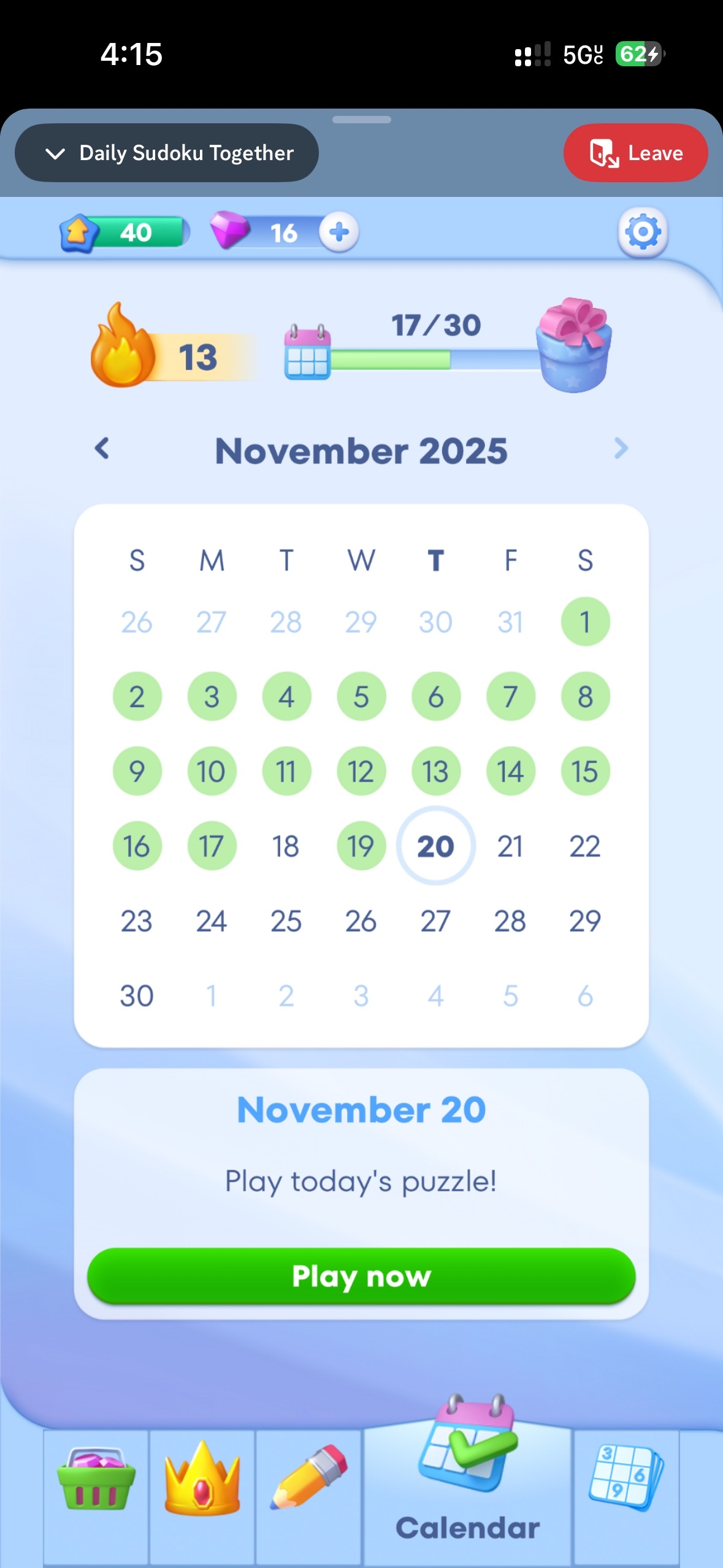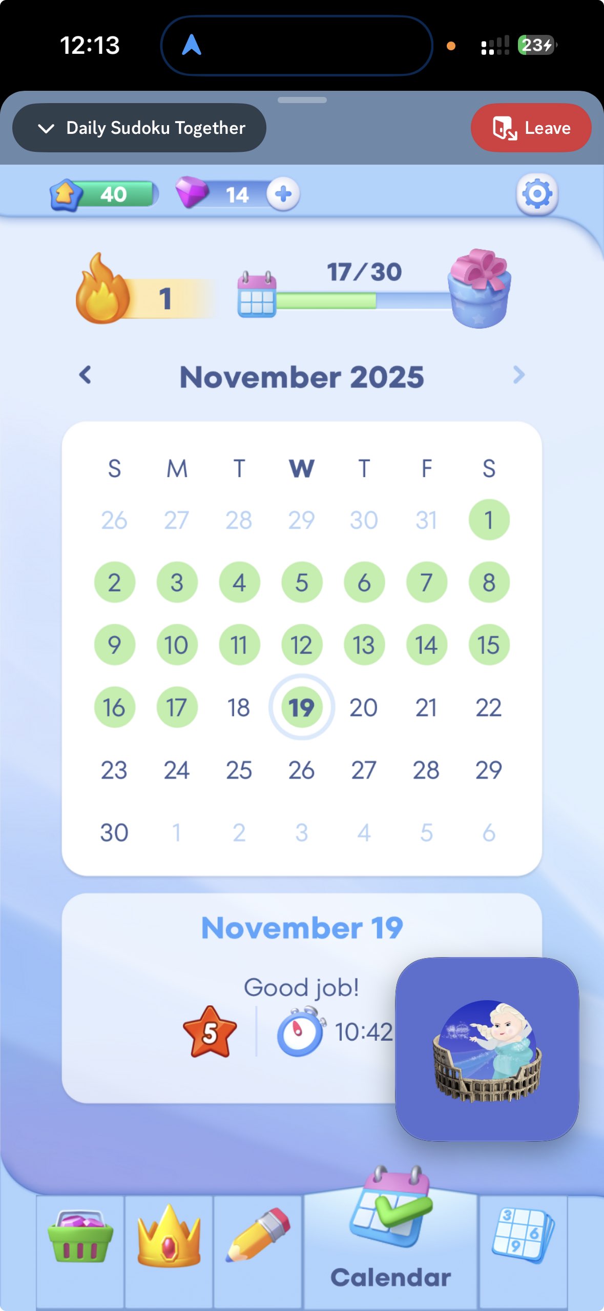 When playing the daily Sudoku of the 18th at around 11:55 pm and solving it in about 10 minutes it caused my streak to be set to a one day streak (from my former 70+ streak) without a prompt to break the streak. It also marked the daily of today, the 19th as completed even though I never clicked on that, so that seems like a mistake as well. Lastly, when checking the calendar I see that the 18 does not show as completed, even though that was the daily I started and finished.