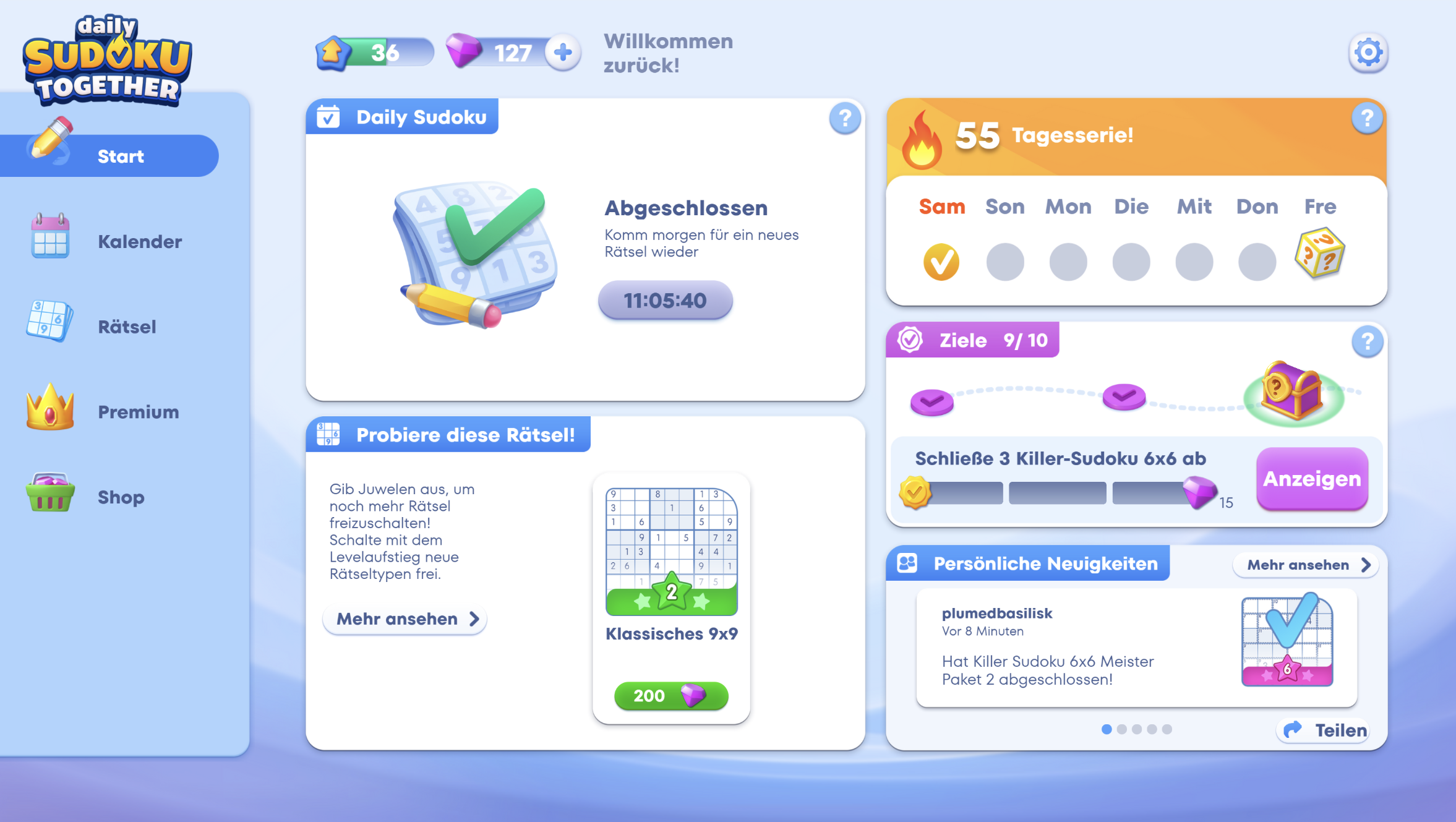 After beating 2 6x6 killer sudokus and 1 normal 9x9 I got the mission to finish the killer 6x6 pack and after I done it I didnt get the mission reward for some reason