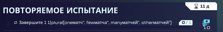 For some reason i see "Завершите 1 1|plural(oneматч', fewматча', manyматчей', otherматчей')" instead of a normal task.