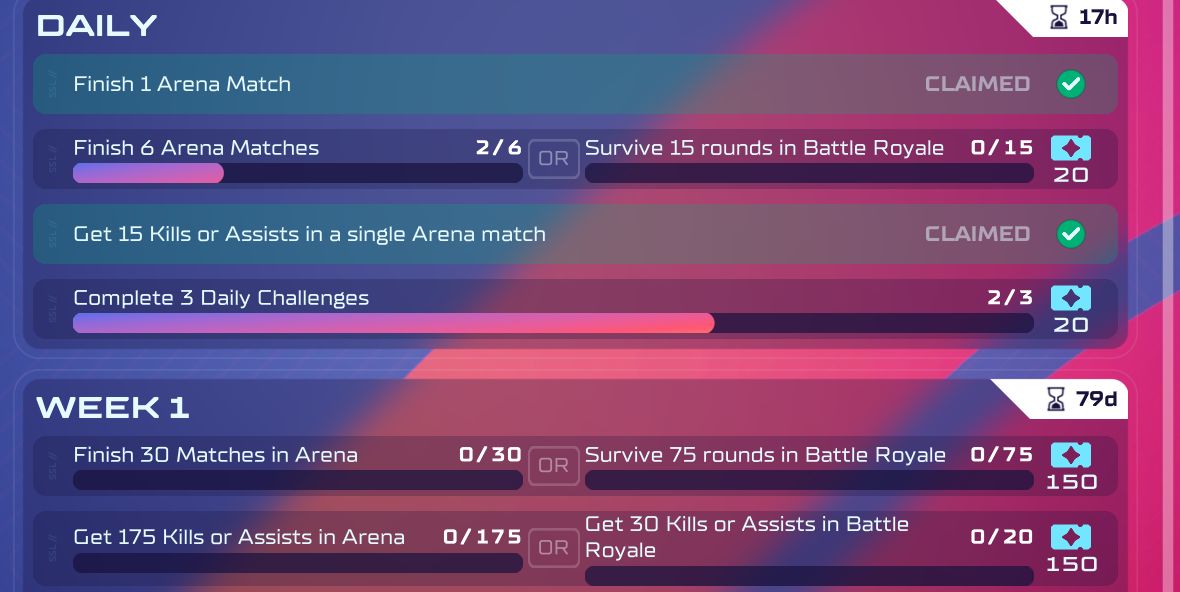 Completed 2 matches which counted towards dailys, but zero progress on week 1 challenges.