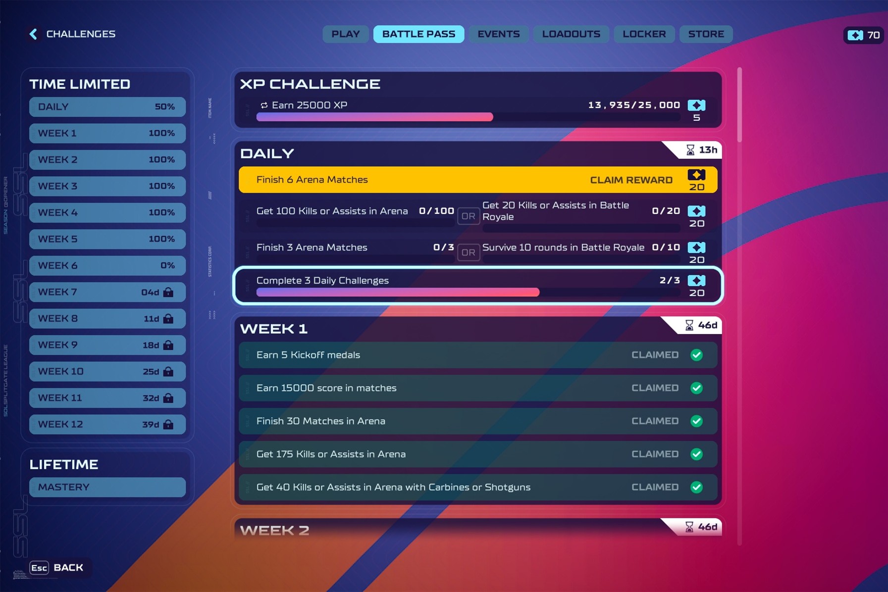 6 Arena matches were finished, but it still shows 0 for Finish 3 Arena matches.