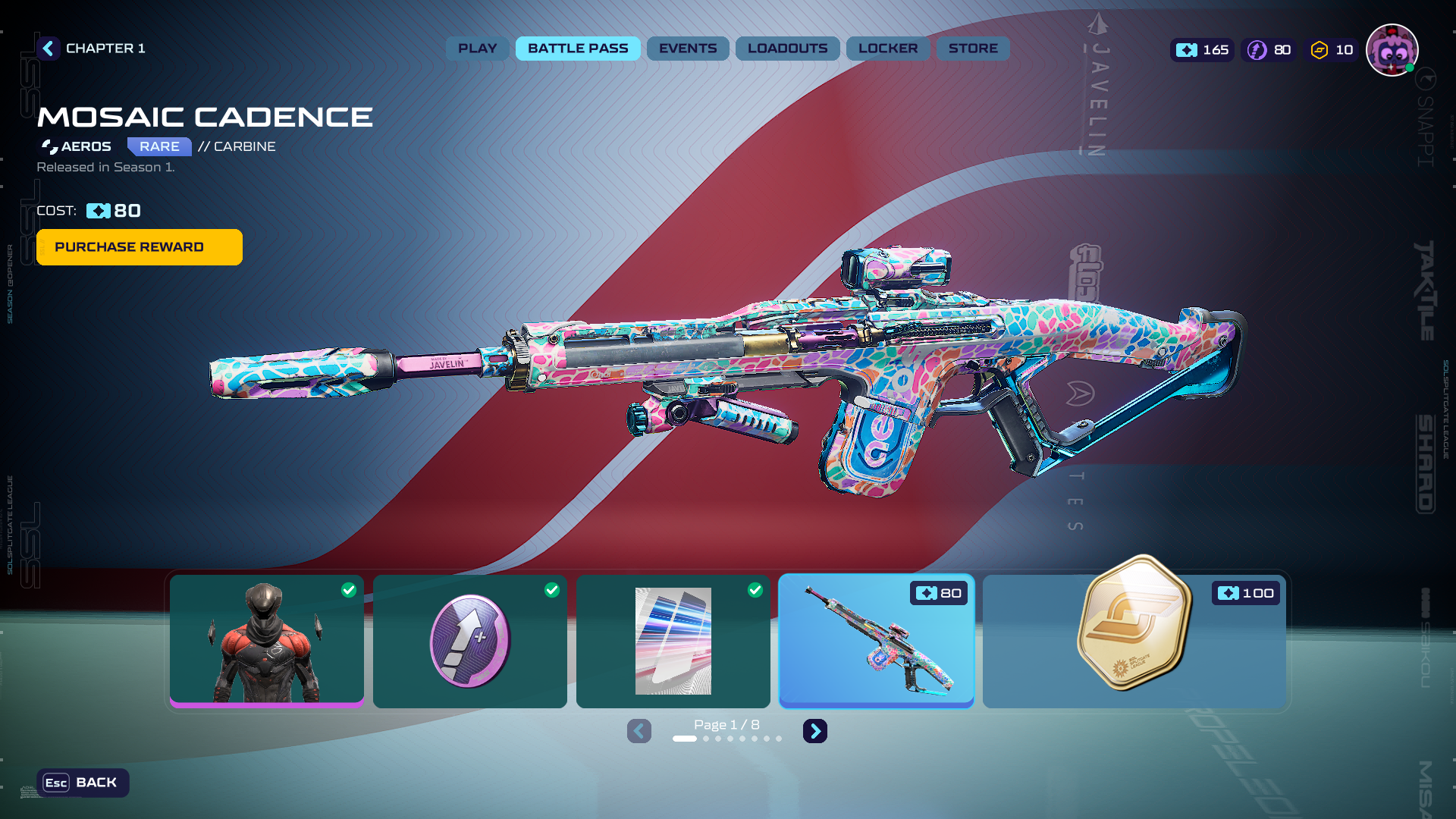 It looks like you can buy the (mosaic cadence) aeros carbine rifle in the locker tab and able to spend 10 proelium currency to unlock it. Than obtain it being level 4 in the battle pass. Note unsure if it free for non paid battle pass user i have it paid for and dose say free on it.