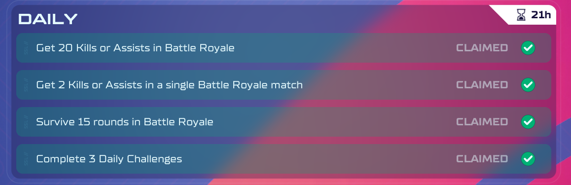 I don't really care about the currency, I completed the battlepass already. I just like to have daily goals in the game to keep me engaged.