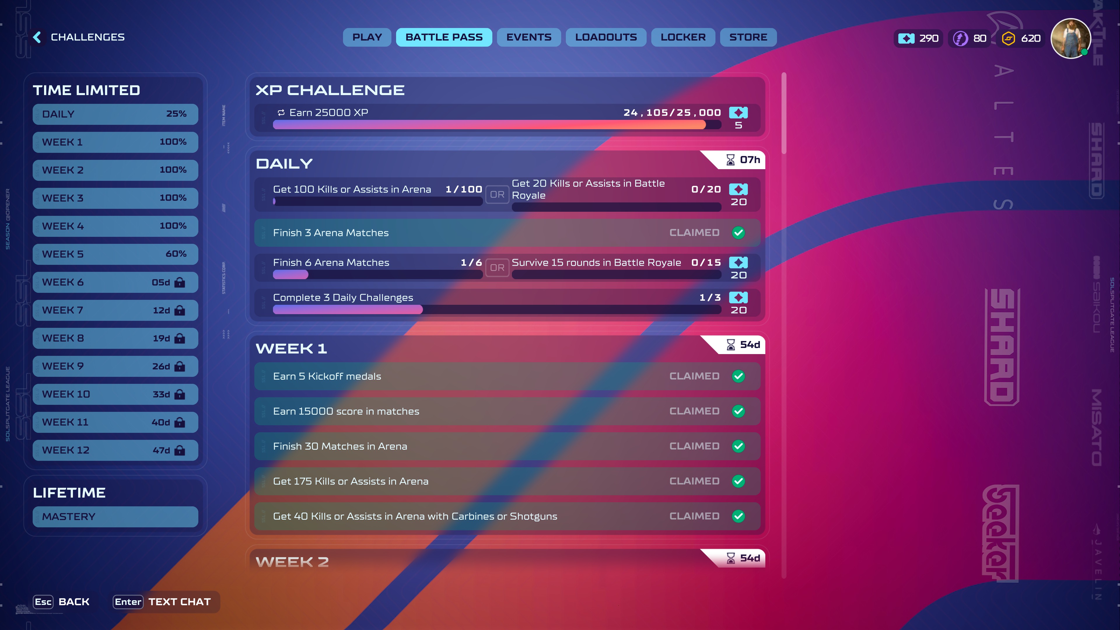 3/3 Arena matches? Done 1/6 Arena matches?? Why is it not 3/6 or 4/6. Also only 1 kill in 3 games is not reasonable :(