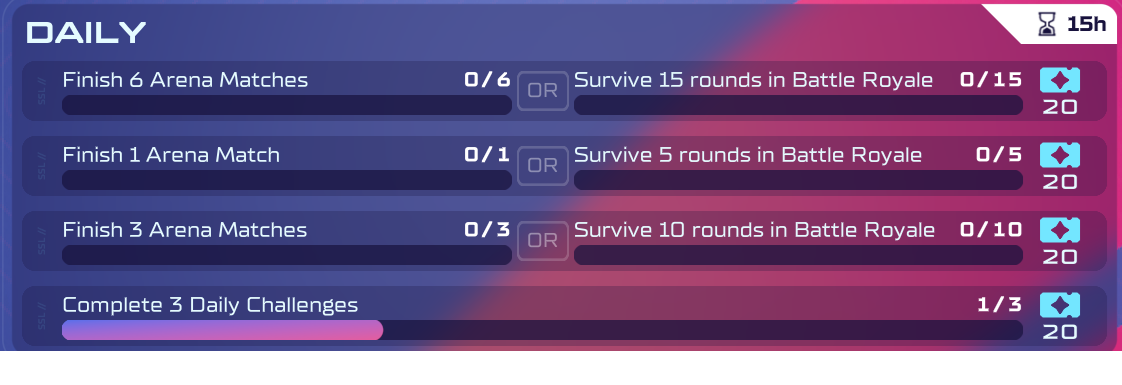 1/3 Daily quests completed at the bottom, none of the daily quests advanced up top. I have played 1 Arena match, all 3 should show some advancement
