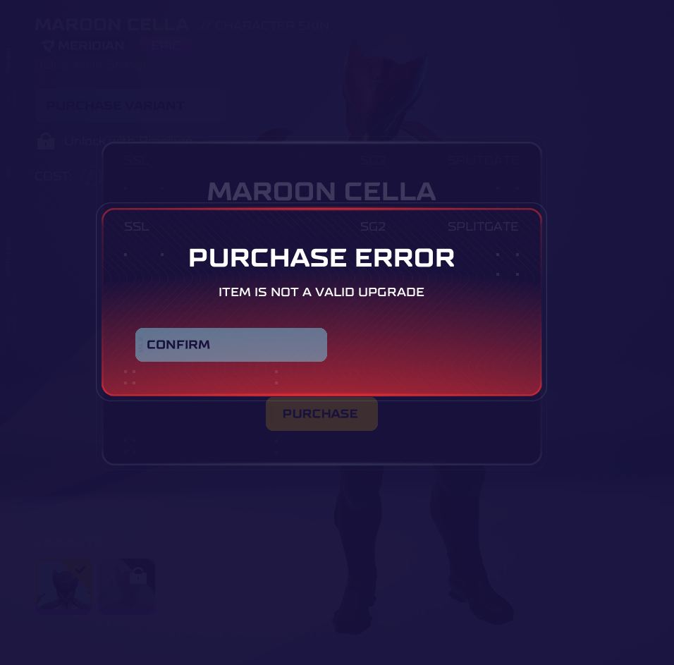 I have base Cella skin so the Maroon Cella should be purchasable but isn't. Also have 70 prolieum so that's not the issue.