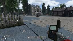 An infected NPC got stuck on an invisible wall in one of the yellow and green houses on the edge of the courtyard. The exact location is in the house on the left when facing the courtyard/well from the yellow and green houses.