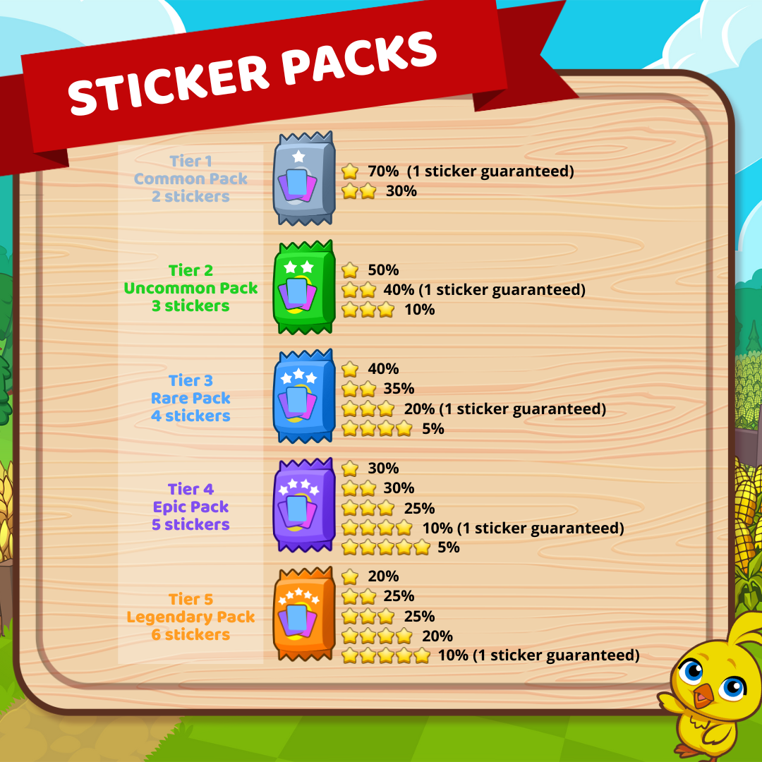 Something I'd like to see adding that I always find myself looking up would be for the sticker album page, the contents of the red gift box and also this infographic of the stickers drop rates sent in discord.