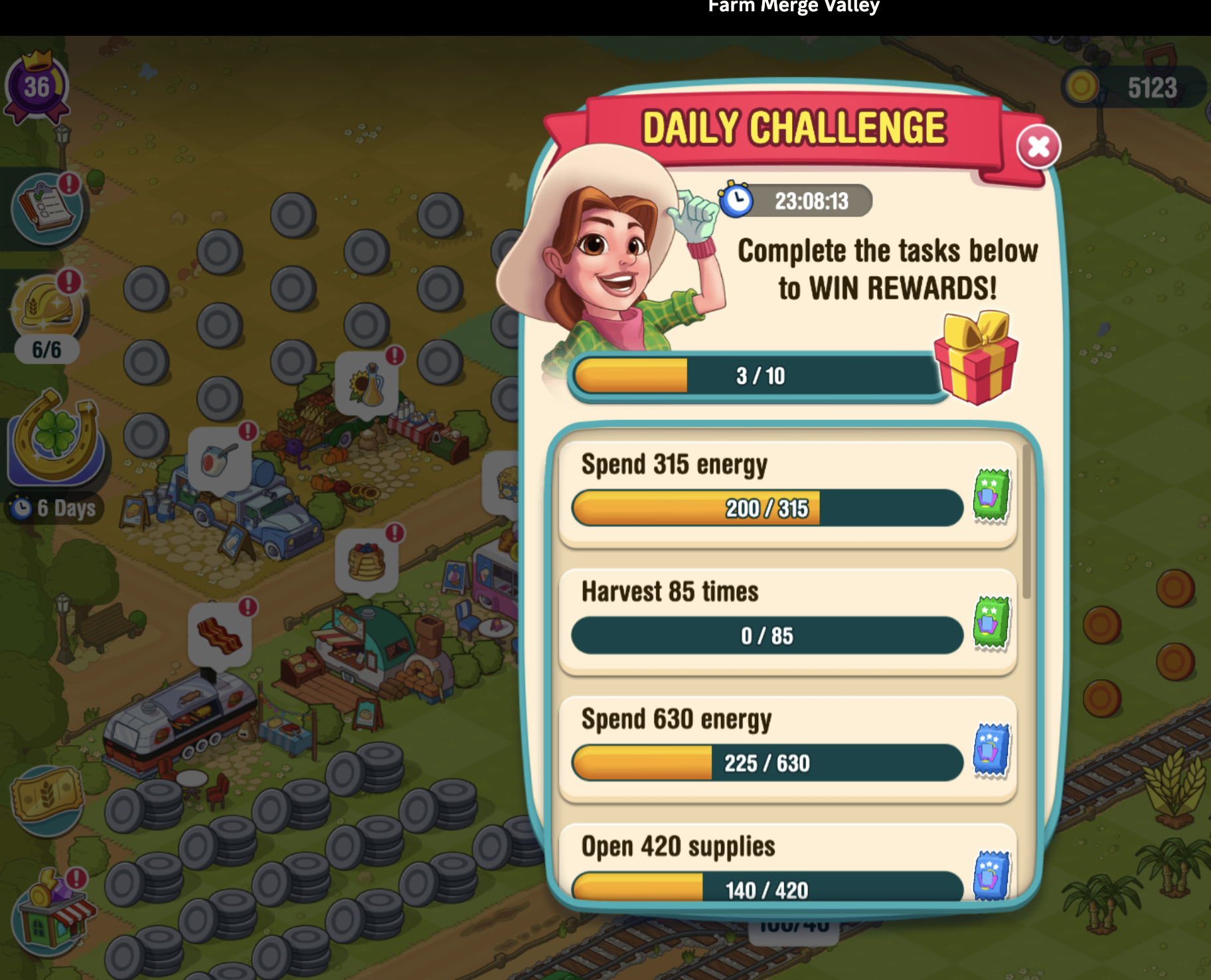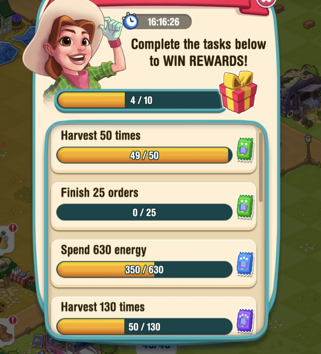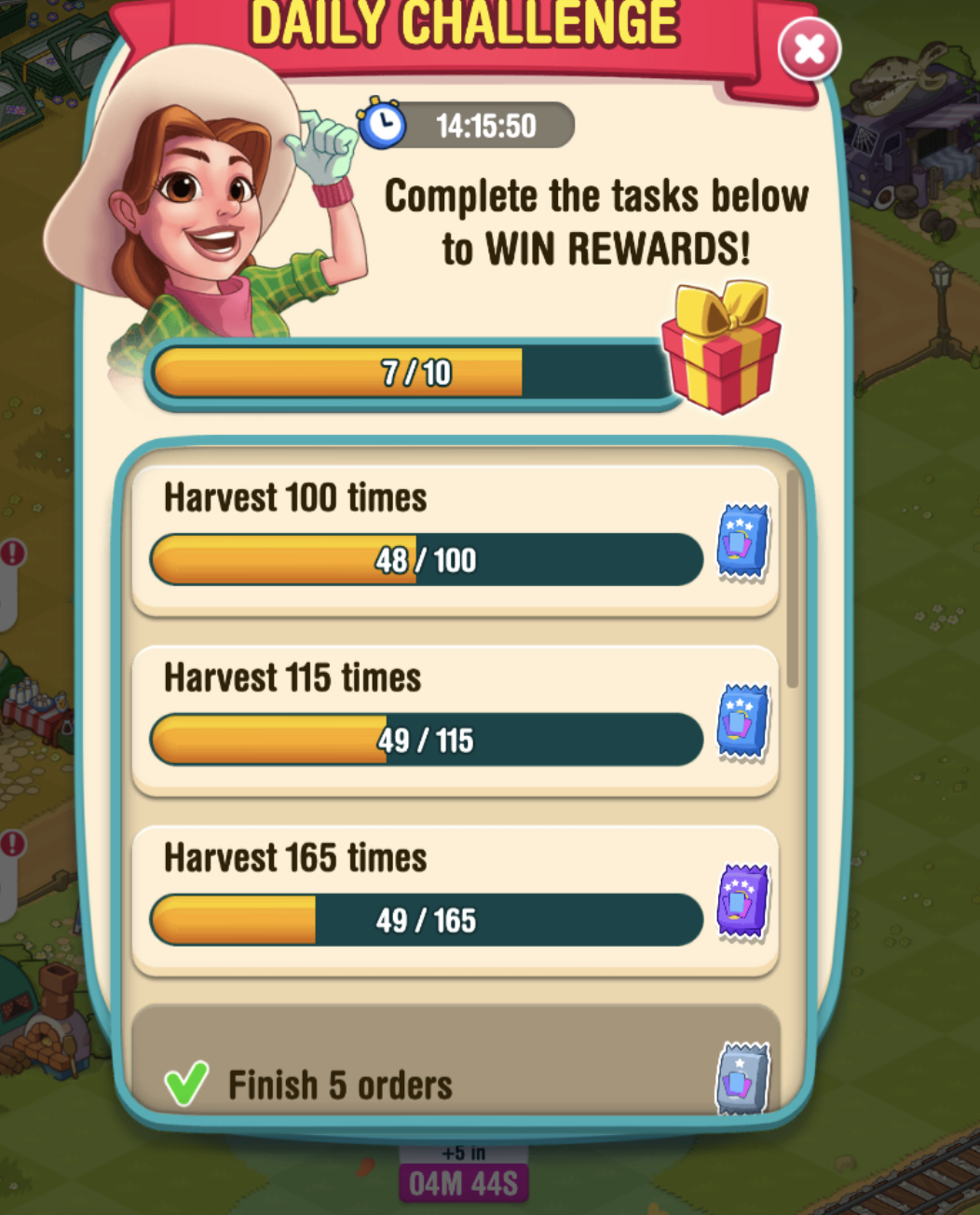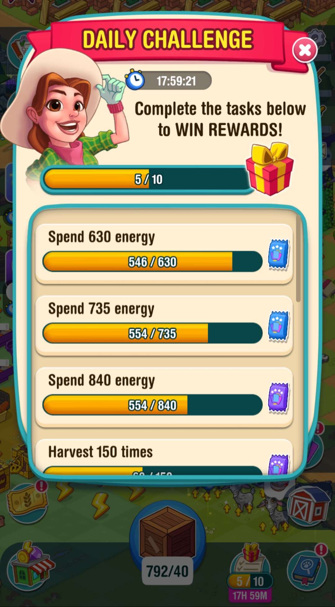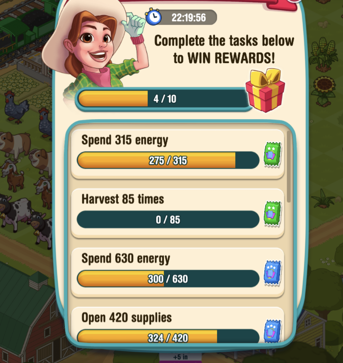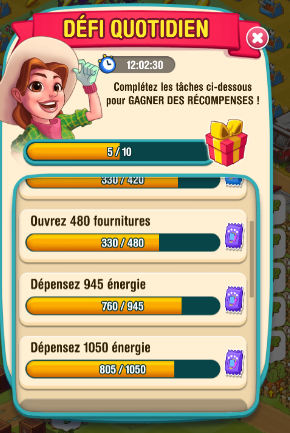 This problem continues. On Dec 21, I completed "open 420 supplies" and graphic showed 405/525 for next challenge. Also, earlier I needed 16 harvests to complete a challange, harvested 10 and still needed 16. However the next 5 were credited properly.