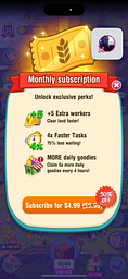 I just signed up for this, and my card was charged, but the game is still the same. I didn't get any boost, worker or something. Thank you