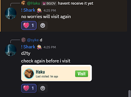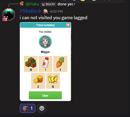 The first player visited me, but it bugged. It went to the bot Maggie farm.
