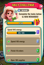 I began playing the game a few weeks ago, and I find it enjoyable. However, I've encountered some difficulty with the daily challenges. They often seem quite challenging to complete due to limited resources, such as trees and stones, in the early levels, and the time allotted often feels insufficient. Even if I were to play continuously, I believe the energy task would still be unattainable. This makes it quite hard to earn the daily challenge rewards, and I estimate I miss out on them about 90% of the time. I spoke with a friend who is nearly Level 40, and they mentioned that the highest they've achieved in the energy challenge is 600. I would greatly appreciate any assistance you could provide regarding the daily challenge energy task, so I can complete them more effectively within my current resources and time constraints.