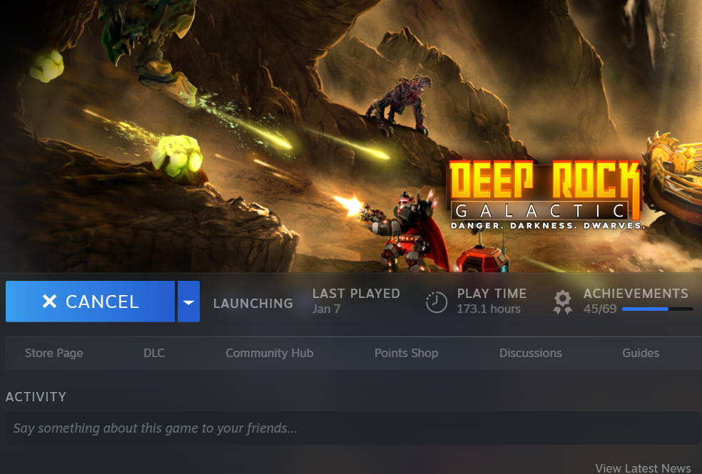 The screenshot is showing the steam menu with the game stuck eternally as "launching".
