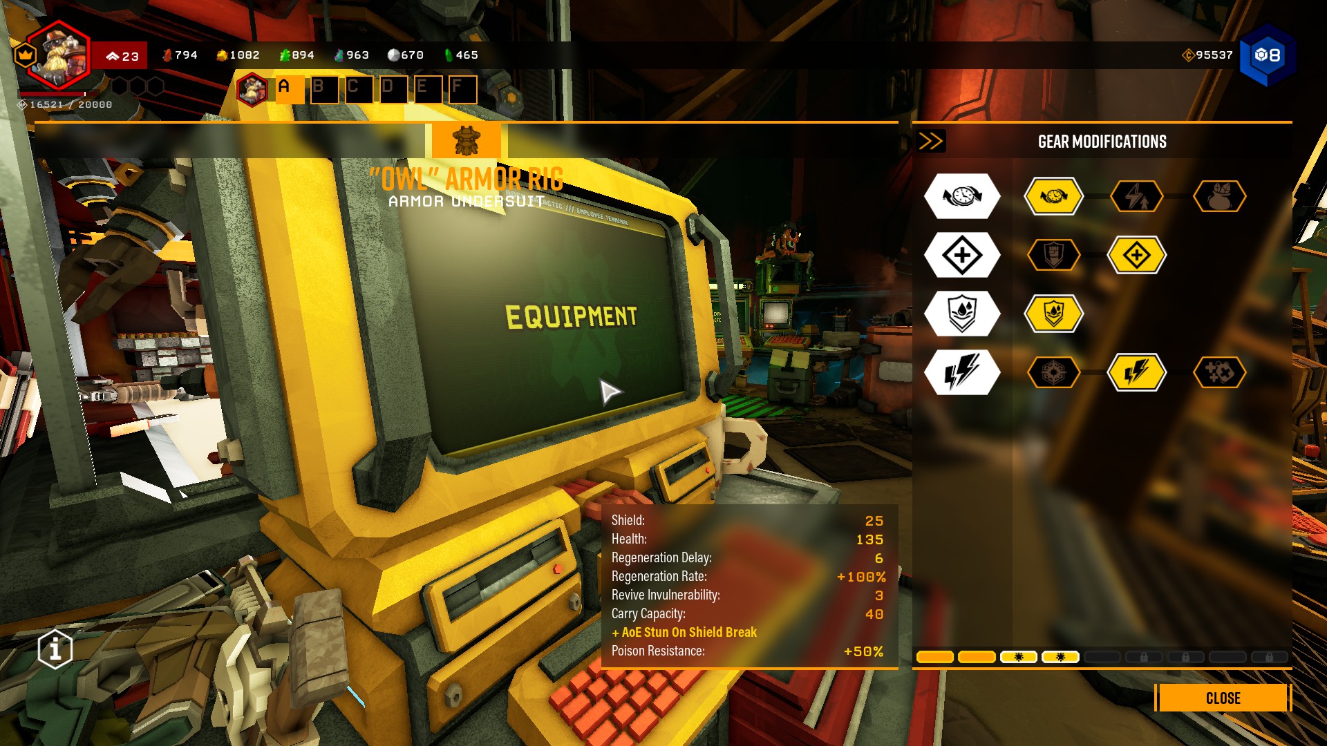 - Left-click then right-click in quick succession on an equipment category (e.g. armor rig)