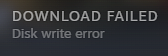 I was playing deep rock then it crashes and doesn't work when I try to rejoin. I uninstalled it and reinstalled it but when it's done installing it says "disk write error." I just want to play drg :-(