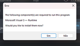 - error appears asking to install the program
