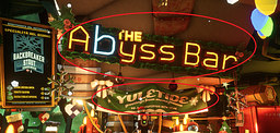 7) All of the posters/bills/placards occasionally seen on the Space Rig are also untranslated and untranslatable (e.g. the Miner's Union's, the lost cargo ones during seasonal events, etc.), and the same applies to a few more key elements which (I guess) are just there as graphic assets (namely, "The Forge" on the Forge terminal, and "The Abyss Bar" above Lloyd - again, see the screens attached). It would be a GREAT touch if those were translatable as well.