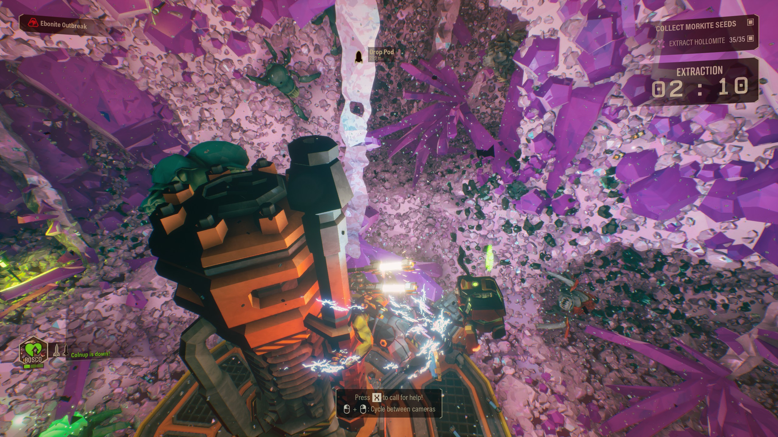 This is the third person view (dead) screenshot of my character getting stuck. Green arrow is where I aimed with grappling hook before getting stuck