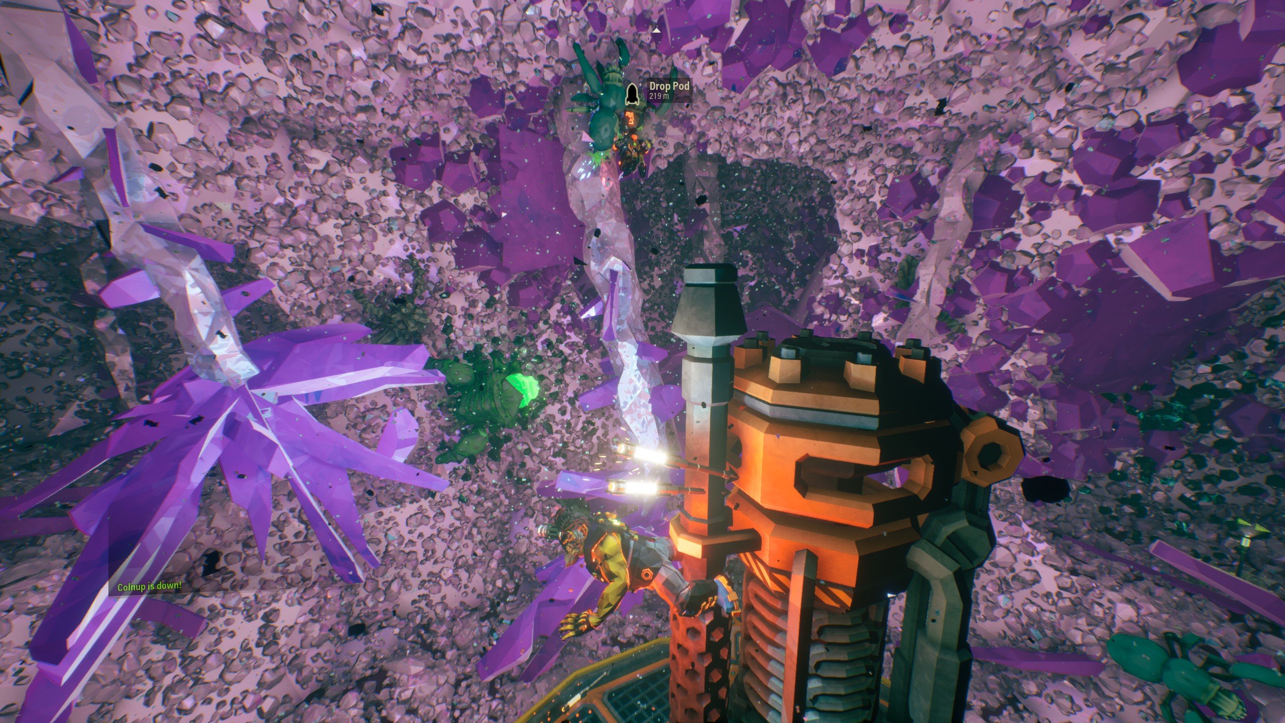 - Use grappling hook on the main shaft behind the chimney of the drill