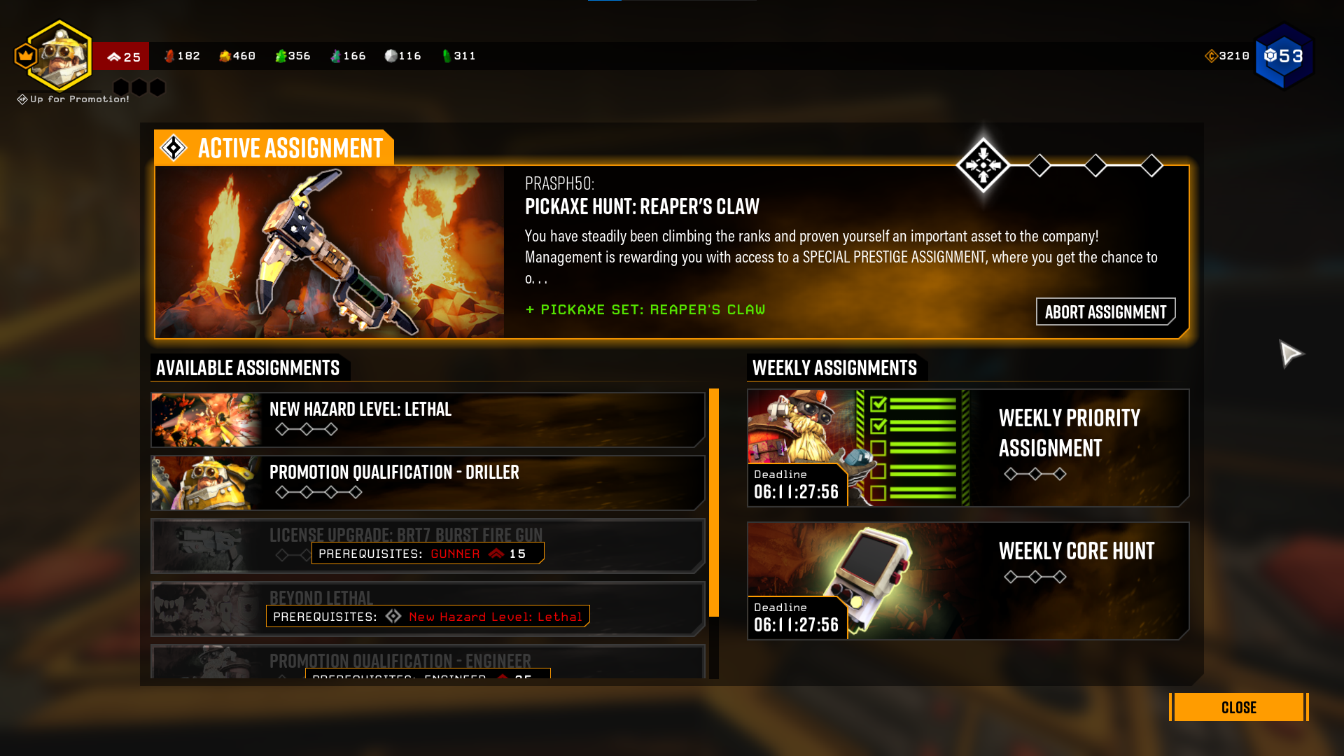 I was in the middle of the Reaper's Claw pickaxe set assignment, after the 2nd mission it somehow reset back to the beginning of the whole assignment, I have the handle and the base part of the pickaxe in my possession