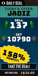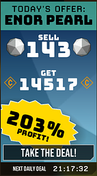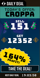 the math for the Daily Deal in the mineral trade is off. Right now a daily deal is active for selling 151 croppa for 12352 credits, claiming a profit of 164%, after some simple math: 50(normal price)x151(quantity)x164(claimed profit)=12382(right price)