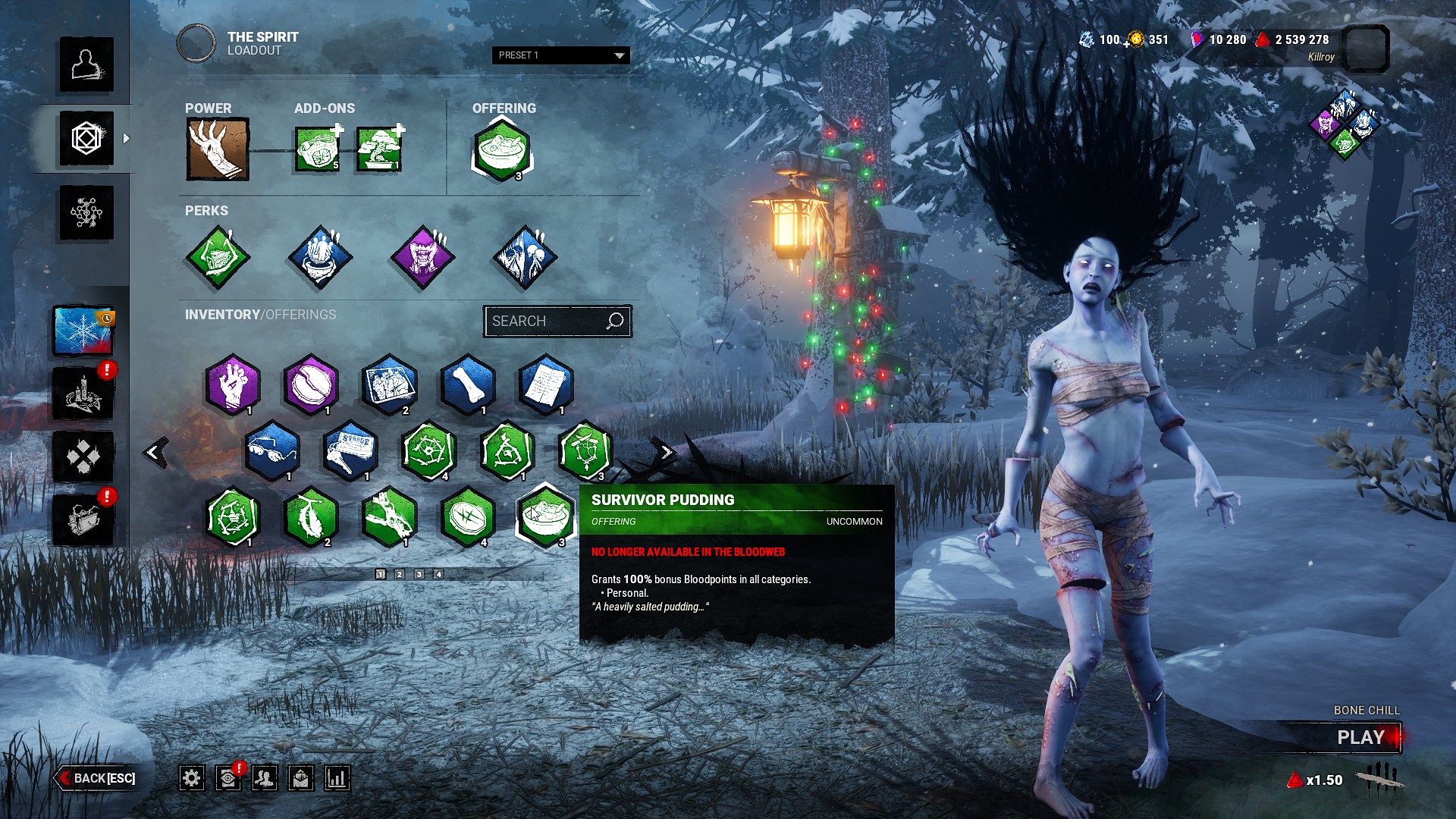 - Chose a character that has add-on that is seasonal and currently not available in the bloodweb