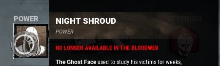 "NO LONGER AVAILABLE IN THE BLOODWEB" appears on all perks, add-ons and offerings