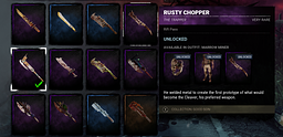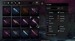 Cosmetic Filter by date is not working correctly. Using my trapper weapons as an example, when filtered down (I'm assuming newest to oldest?) you have the hockey stick from the current rift in the middle of the pack, with older cosmetics both ahead and behind it. Also of note is the position of the Pain Flail (Bronze). Despite it being listed as the oldest when filtering with the down arrow, filtering the other way moves its position to a different ranking alltogether. Testing with other killers leads to similar results. Hounmaster, for example, shows her b***** cosmetic as older than her default.