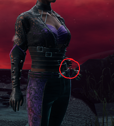 Incorrect Position of Charms in Orela Rose's "Rave's Anguish" Cosmetic. Her charms float when equipped, and aren't attached to her belt. They should be moved down, and attached to the belt.
