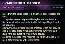 Bug: The Lich's Dragontooth Dagger addon fails to apply to injured Survivors