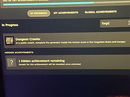 Dungeon crawler achievement is not given after repairing the designated generator on forgotten ruins (in the torture chamber near the chair/beholder) and escaping.