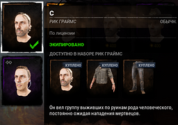 In the Russian localization, Rick's head in the base skin is called "C" instead of "Хватка выживальщика" (Survivalist Grit)