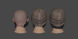 Her hair is inside her head, causing a visible bald spot that is distracting.