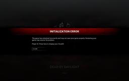 After a power outage occurred mid bloodweb upgrading, I reopened the game when the energy came back on only to find out it apparently had a Initialization error. I clicked in the verify file integrity for dbd in the properties option of steam, and no anomalies or corruptions in the files were found. I tried looking for other solutions but, for lack of a better word, they all seemed shady and untrustworthy to attempt. I apologize for my poor grammar, please send help.