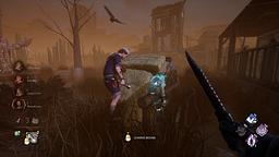 On dead dawg saloon I grabbed a survivor with Wesker using his power. I got very close to a fence post but not close enough to smash them into it, so they got thrown. Somehow, they got lodged in the fence post and got stuck for the whole game. I couldn't hit them or grab them, and their teammates couldnt get them unstuck either, I tried slamming another survivor into them and it did cause deep wound, once they got downed I couldn't pick them up but their teammates could heal them back up.