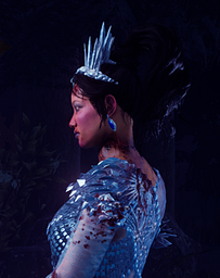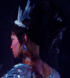 The Krasue's head piece, "Frozen Crown" from her 2025 winter event outift has bugged physics for the hair and some clipping issues. In her body form, the ponytail has some movement. However, the ponytail is consistently glitched out to where it flops to the side constantly. In lobby, it also clips into the the back of her neck. The piece of her head dress that lies on the forehead also clips into her head.