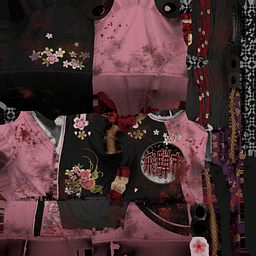 Perhaps it's supposed to be the cloth tied to her waist, but nowhere in the textures seem to feature the 七転び八起き inscription.