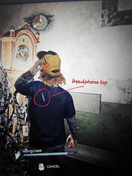 When going up to Vecna's clock to turn the timer down, the headphones are inside of Dustin's torso