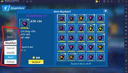- Go to Inventory > Gear > Buyback, with the buyback tab open