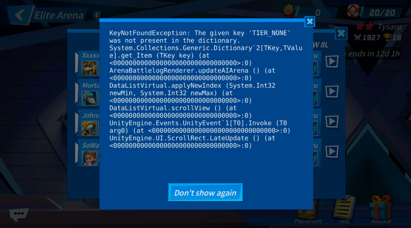 #44 Scrolling Issue in Elite Arena Info Defense Section, the game crashed /