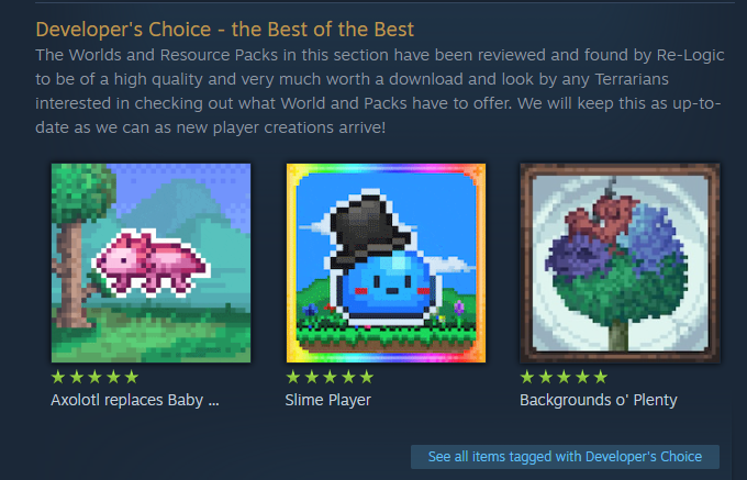 A developer endorsed workshop section, similar to the one present in Terraria's Workshop.