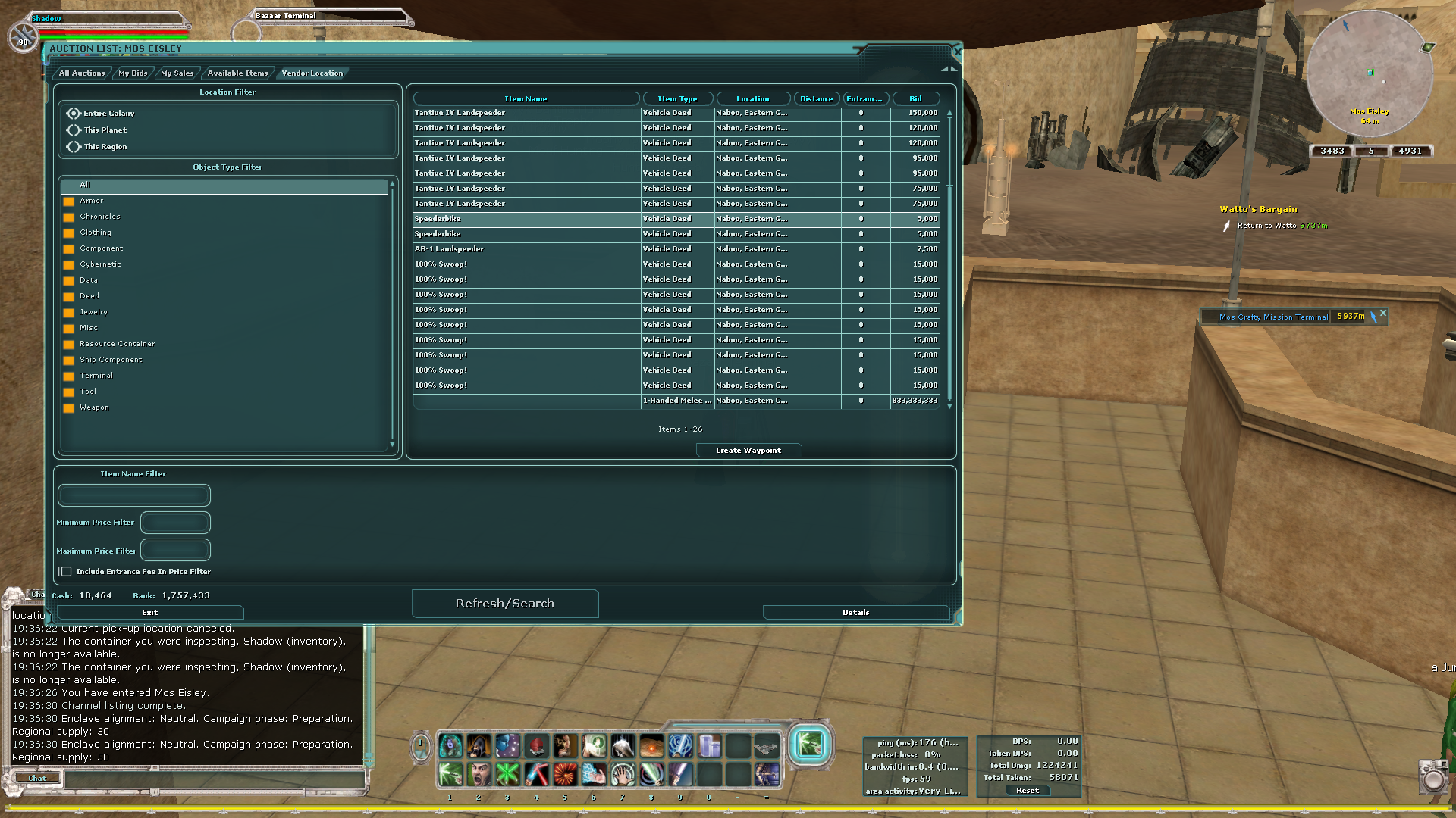 A picture of the Bazaar Terminal only listing 26 items not everything is being listed in the galaxy like it should