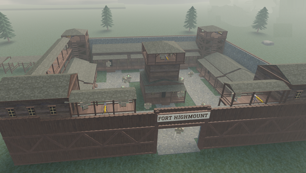 Appears in the forest biome, it was an military fort for surveillance and training, when the zombie plague started, every soldier got infected, the loot of the place is weapons, ammo, bandages, and bonds, after killing every soldier of the fort, and big soldier zombie with 2 swords will spawn, when you kill him drops an office key, inside the office there is an colt m1900 (stronger version of mauser) and an cei rigotti rifle (tommy gun free version)