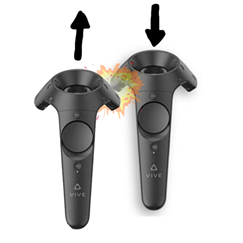 The defibrillator is unusable when playing with Vive-Wands because the sensor rings at the top of the controller impact each other when you attempt to charge it. A few cm offset (ie. towards the "inside" of the hand) would go a long way to fix this and prevent damage to controllers.